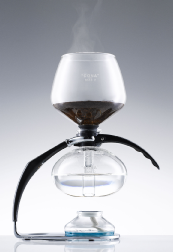 Vacuum brewing method: The CONA™ uses the vacuum principle, also known in the US as Siphon Coffee. Water is heated in the lower glass sphere, which pushes steam pressure upwards. There it mixes with the coarsely ground coffee. As soon as the heat source is removed, the air cools down and the brewed coffee is sucked back down. The result is a rich, full-