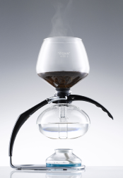 Vacuum brewing method: The CONA™ uses the vacuum principle, also known in the US as Siphon Coffee. Water is heated in the lower glass sphere, which pushes steam pressure upwards. There it mixes with the coarsely ground coffee. As soon as the heat source is removed, the air cools down and the brewed coffee is sucked back down. The result is a rich, full-bodied taste.